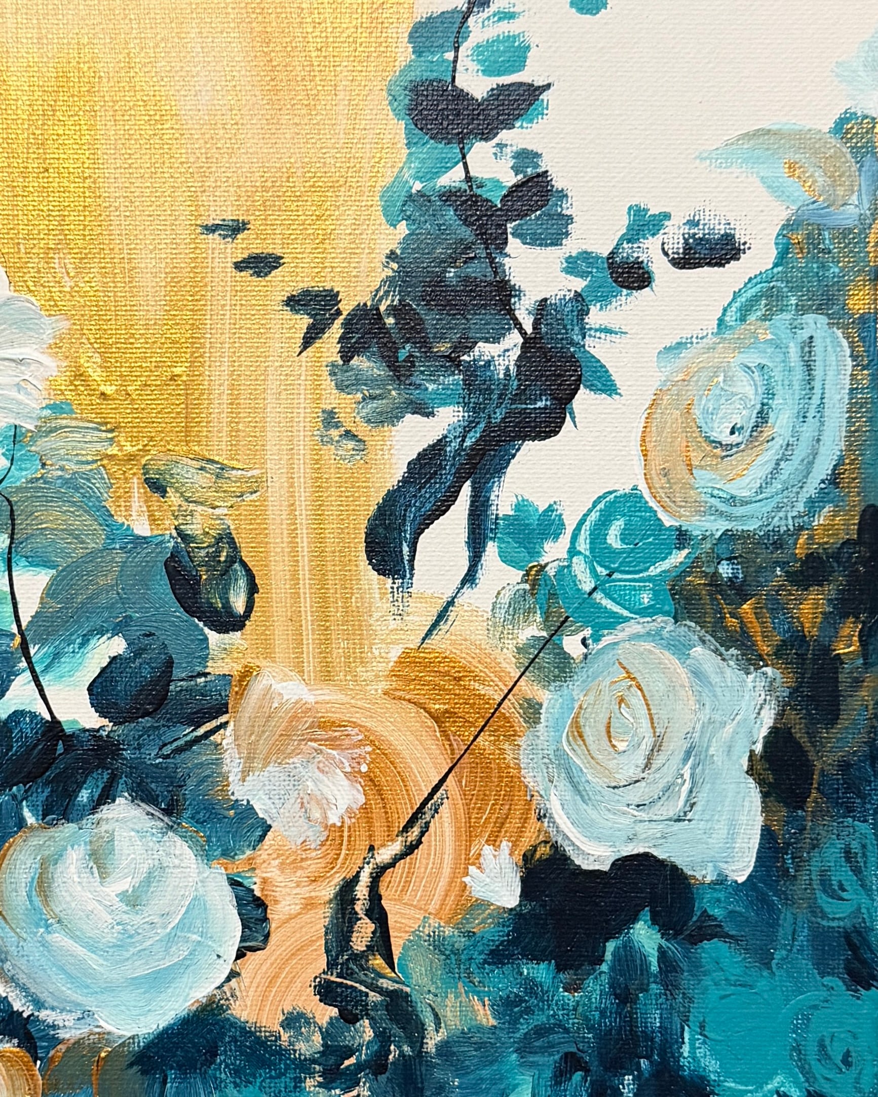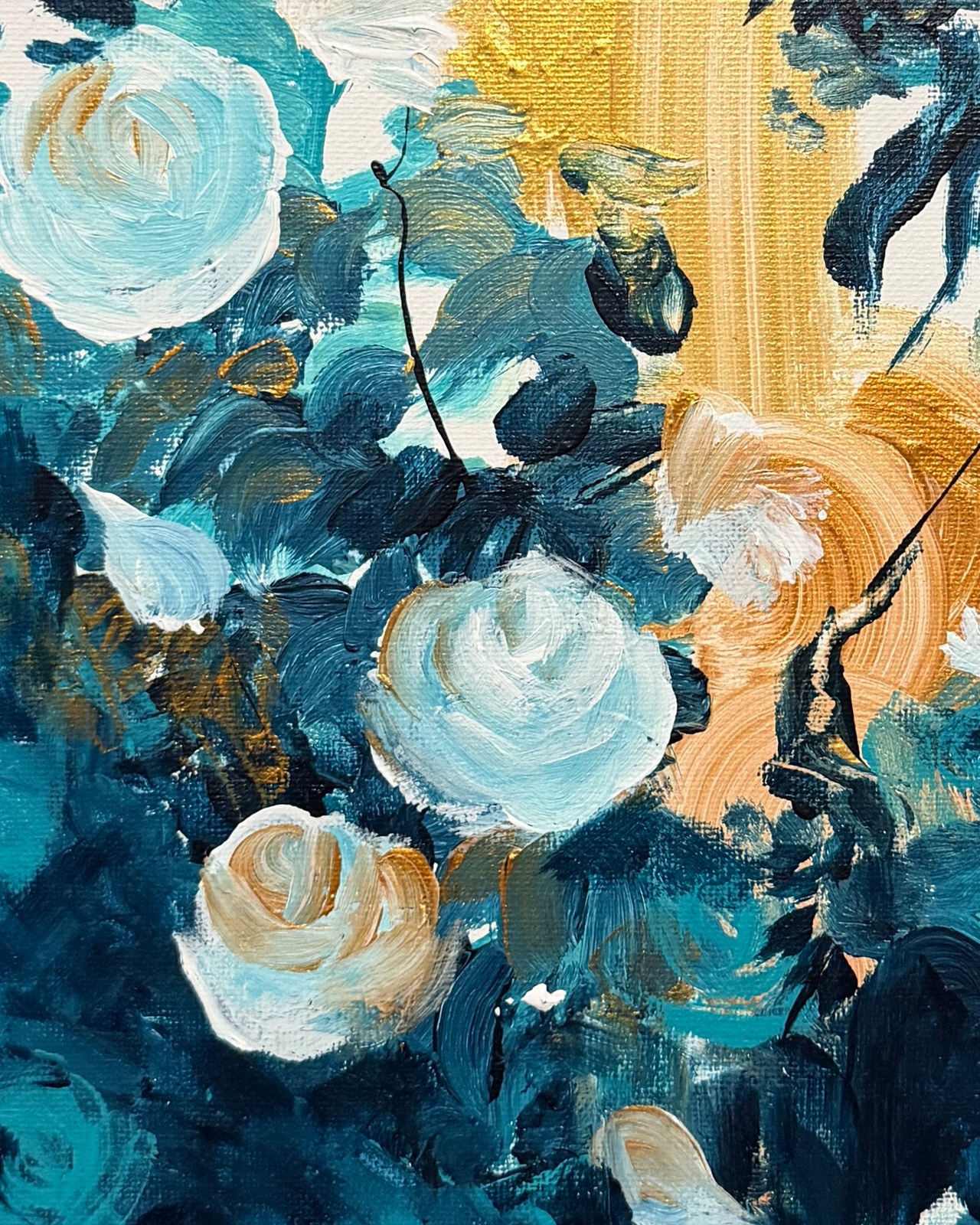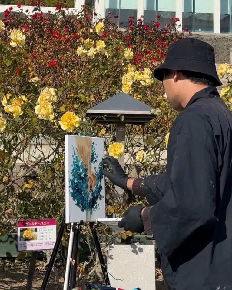 制作中、凍える風の中でも変わらず美しく咲く薔薇に心を奪われ、一筆ごとにその強さと優しさに感動しました。