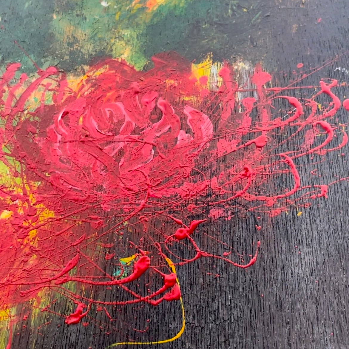 赤々と力強く咲く彼岸花をテーマに描きました。